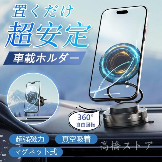 スマホホルダー 車 マグネット スマホスタンド 車載ホルダー MagSafe対応 電動真空吸着式 吸盤 ダッシュボード 卓上 折りたたみ 携帯 スタンド 携帯ホルダー 置くだけ 安定性抜群 片手操作 取り付け簡単 スマホ 360°回転可 真空吸盤&超強磁力