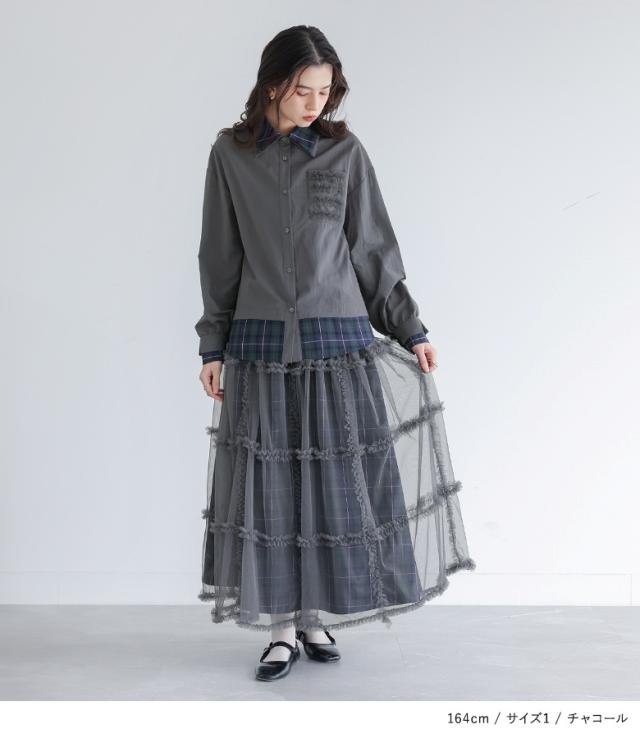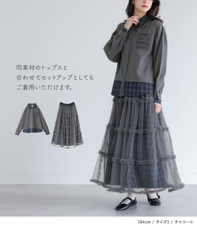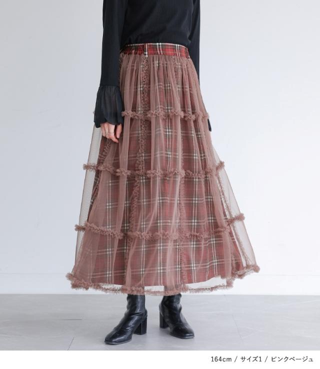 フリルスカート ロング丈 レディース ボトムス セットアップ対応 チュール チェック柄 春 秋 セットアップ 【TP】 スカート ロングスカート マキシスカート フレアスカート チュールスカート 個性派スカート マキシ丈 ギャザー フリル ウエストゴム 配色 無地 異素材MIX シースルー シアー 透け感 レイヤード おうちで洗える カジュアル レトロ クラシカル シンプル キレカジ フェミニン ガーリー 可愛い系 大人女子 大人可愛い お洒落可愛い 大人カジュアル 上品 きれいめ Sサイズ Mサイズ Lサイズ LLサイズ 3Lサイズ XLサイズ ぽっちゃり 体型カバー 大きいサイズ プラスサイズ 10代 20代 30代 40代 50代 60代 女子会 通学 お買い物 お出掛け 旅行 リゾート おしゃれ お洒落 トレンド 流行 ママ 母 somari imagination ソマリイマジネーション ナチュラル osharewalker オシャレウォーカー おしゃれうぉーかー ベージュ ピンクベージュ ピンク 桃色 グレー 灰色 チャコールグレー チャコール マルチカラー ミックスカラー[ID]13bo0br