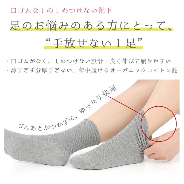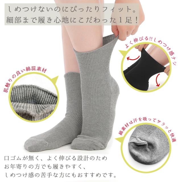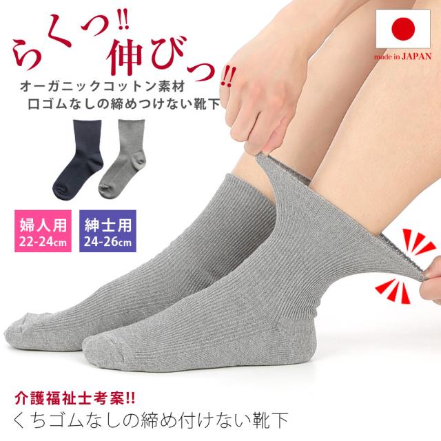 日本製 くちゴムなし 締め付けない 靴下 綿混リブ レディース メンズ ソックス 足首 つま先 ゆったり 楽ちん靴下 高齢者 シニア 車イス 介護 むくみ 予防 冷え 対策 伸びる ゆったり 脱ぎ履き簡単 女性用 介護用 母の日 父の日 敬老の日 プレゼント メール便 【送料200】