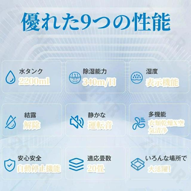 - この頃の梅雨の天気では、この機械のおかげで室内が乾燥しています。本当に満足しています。この除湿機を非常に推奨します。