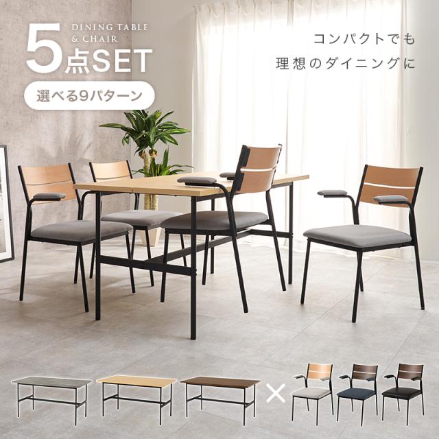 ダイニングテーブルセット 4人 ダイニング おしゃれ 5点 木目調 石目調 テーブル チェア 長方形 食卓 椅子 5点セット 4脚 北欧 肘あり リビング インテリア ダイニングセット PVC ファブリック