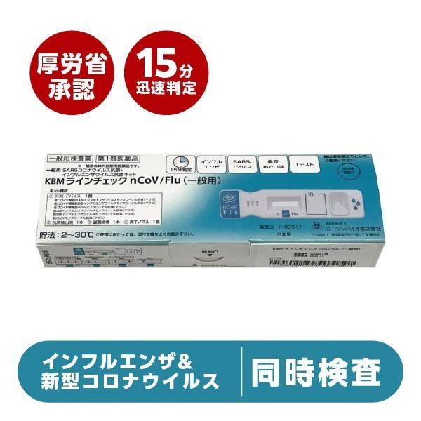コロナ検査キット・インフルエンザ 同時検査 『KBM ラインチェック nCoV/Flu(一般用)』 厚労省公認 抗原検査キット インフルエンザ検査 コロナウイルス検査 新型コロナ 抗原検査【第1類医薬品】