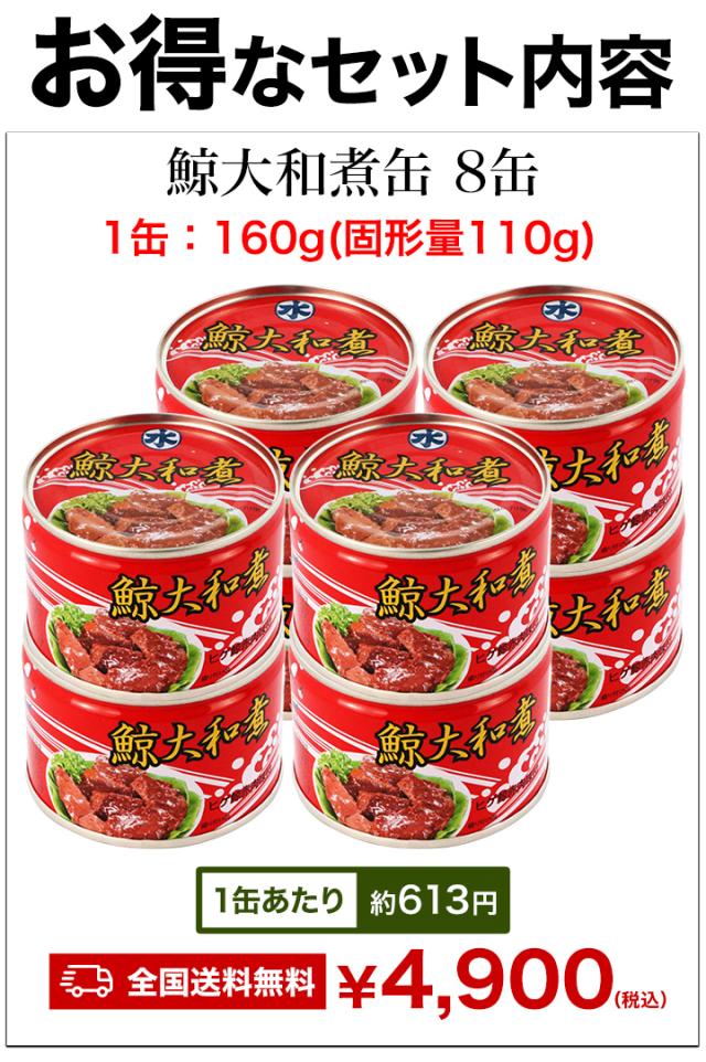 8缶 丸水札幌中央水産 鯨大和煮缶 クジラ くじら やまとに お惣菜 缶詰 かんづめ 防災 非常食 備蓄 缶切り不要 満足良品館 送料無料