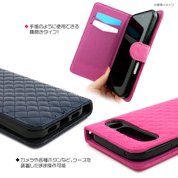 キルティングレザー手帳型ケース