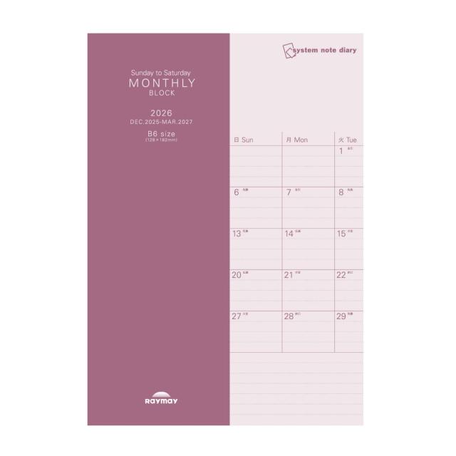 【メール便発送】レイメイ藤井 システムノートダイアリー 2026年 フォルリフィル B6 マンスリー・ブロック(日曜始まり) RFDR2685