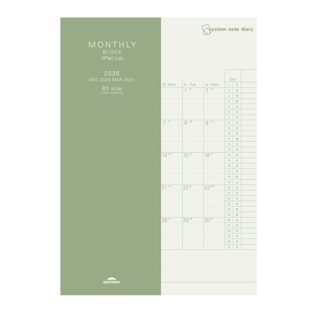 【メール便発送】レイメイ藤井 システムノートダイアリー 2026年 フォルリフィル B5 マンスリー・4プラン RFDR2693
