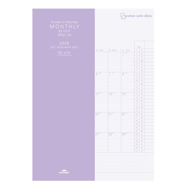 【メール便発送】レイメイ藤井 システムノートダイアリー 2026年 フォルリフィル B5 マンスリー・4プラン(日曜始まり) RFDR2669