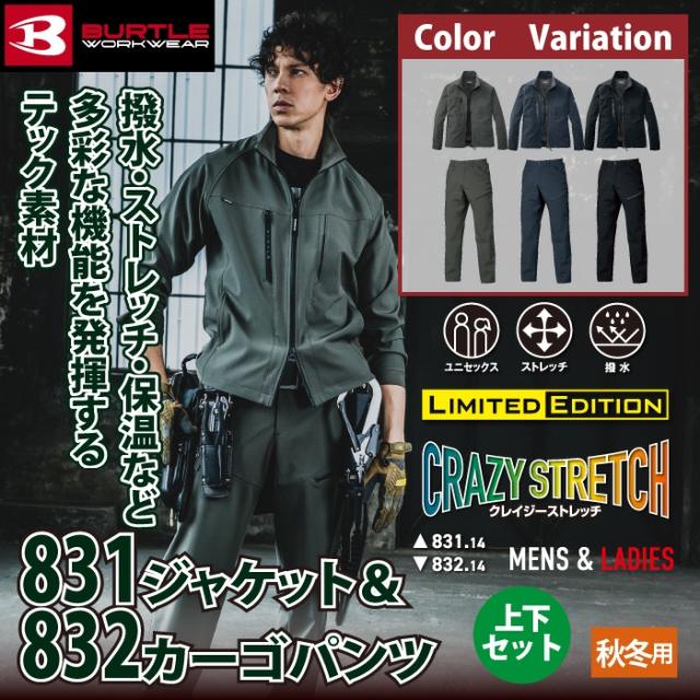バートル BURTLE 作業着 上下セット 831 ジャケットS-XL と 832 カーゴパンツ S-XL 作業ズボン 作業服 おしゃれ 秋冬 撥水 保温