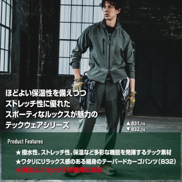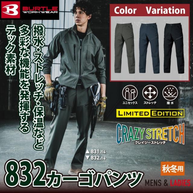バートル BURTLE 作業着 作業ズボン 2025秋冬新作 832 カーゴパンツ S-XL 作業服 おしゃれ 撥水 保温