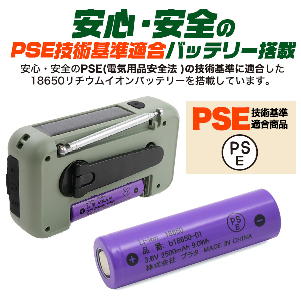 ※バッテリーを長持ちさせるために、長期保管の際は3ヶ月に1回はフル充電をして下さい。 ※ラジオを長時間使用せずに電池残量が少なくなった場合は、使用する前に手回し充電を回して充電してください。