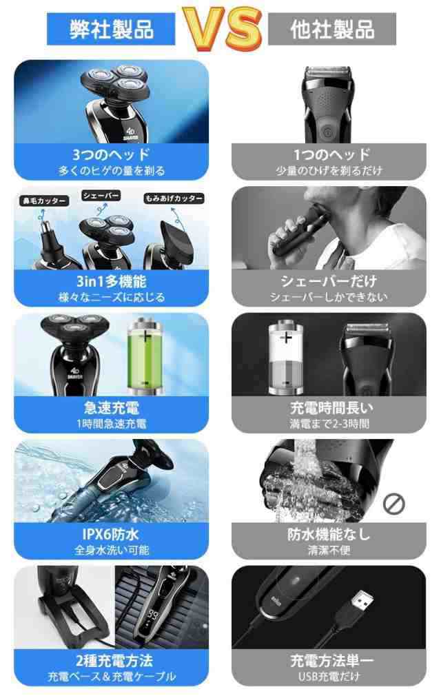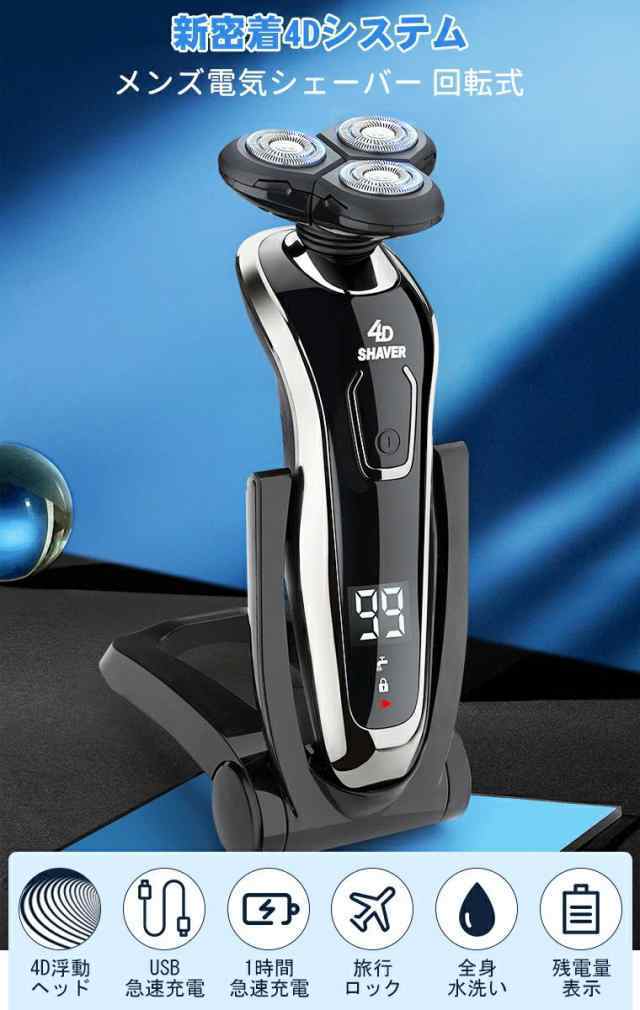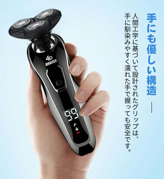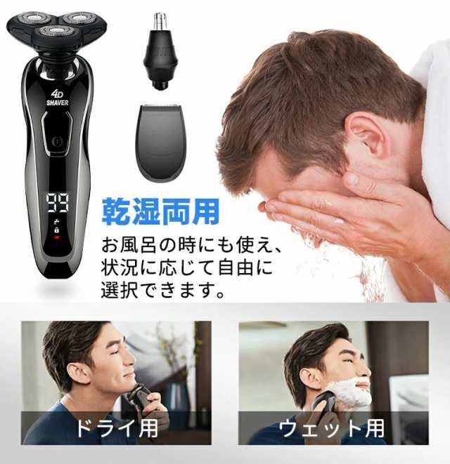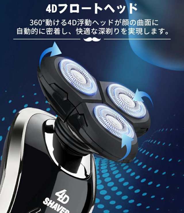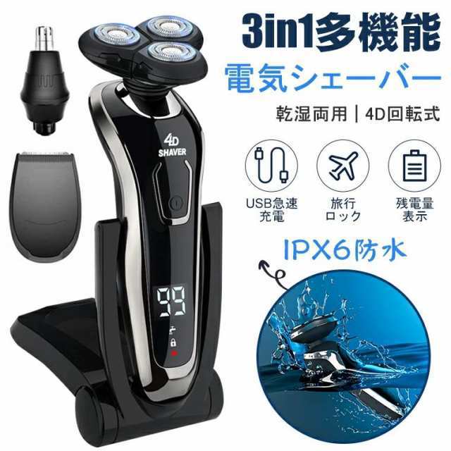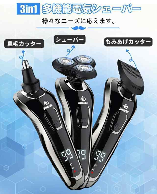 電気シェーバー 男性 メンズ シェーバー 男性 深剃り ひげそり ムダ毛処理 顔そり 髭剃り 水洗い 電動 電動シェーバー 男性用 電気かみそり 鼻毛カッター もみあげ 3個ヘッド IPX6防水 回転式 お風呂ソリ LED 乾湿両用 プレゼント クリスマス