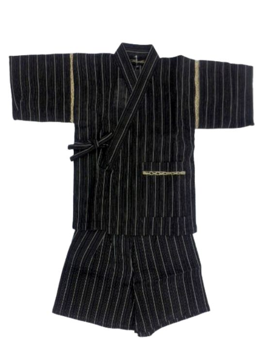 甚平 子供 キッズ 男の子 綿100% 日本製生地 じんべい 上下 祭 甚平 部屋着 パジャマ 子供甚平 100cm 黒地 大名縞柄 No.103
