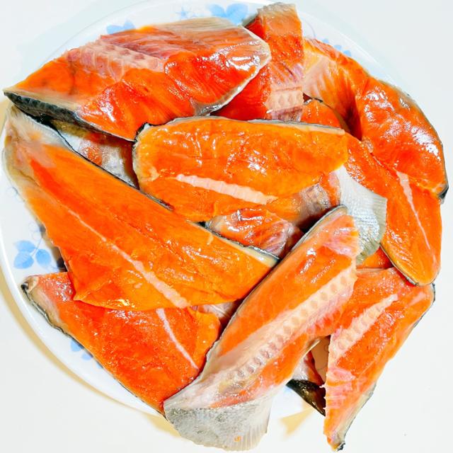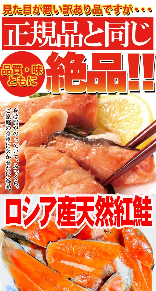 ■ロシア産天然紅鮭(沖獲り)を定塩切身加工した際に出る、尾の部分やカットミスした切身を1kgパックにしたお買得な商品です。味はもちろん変わりません!