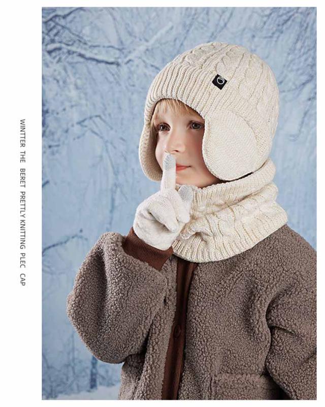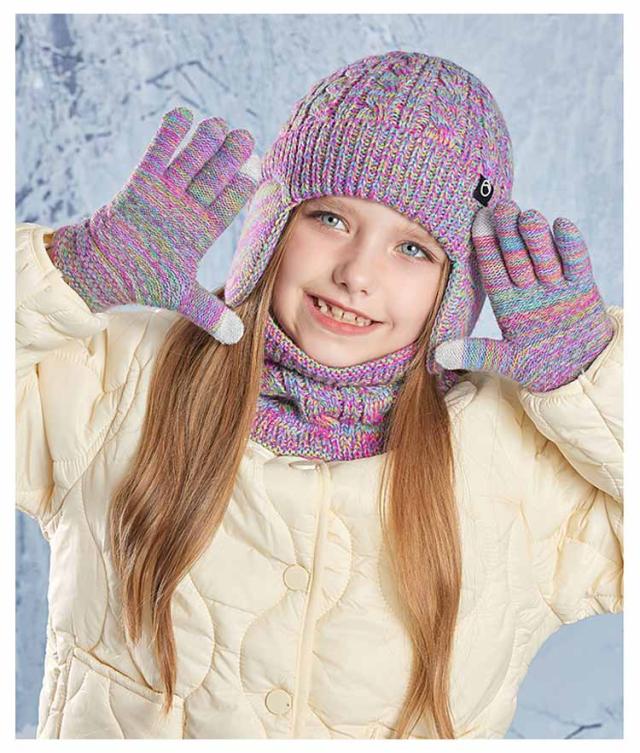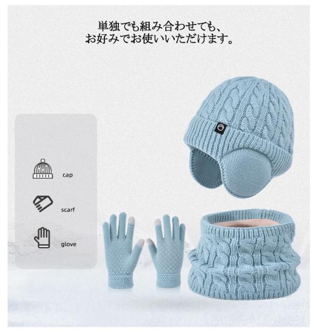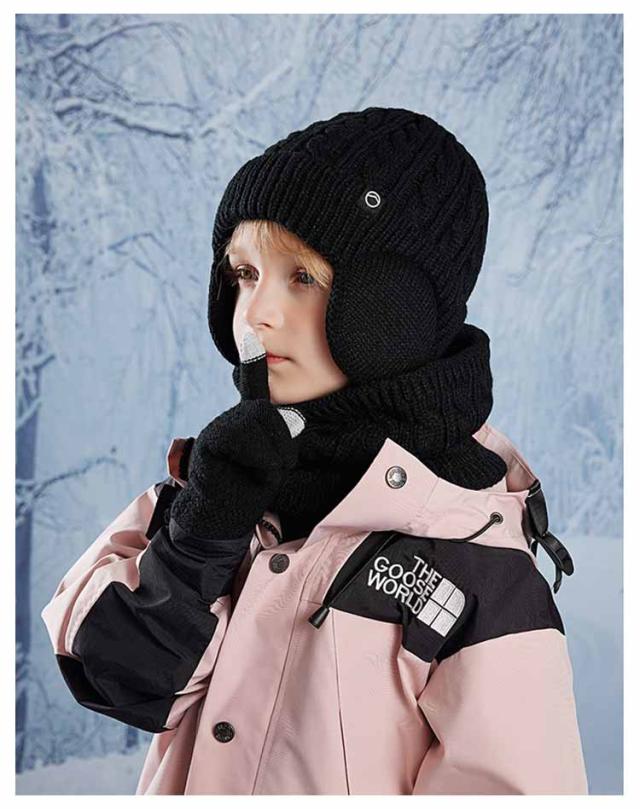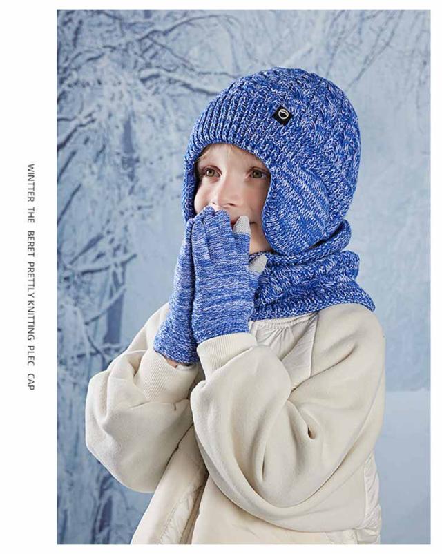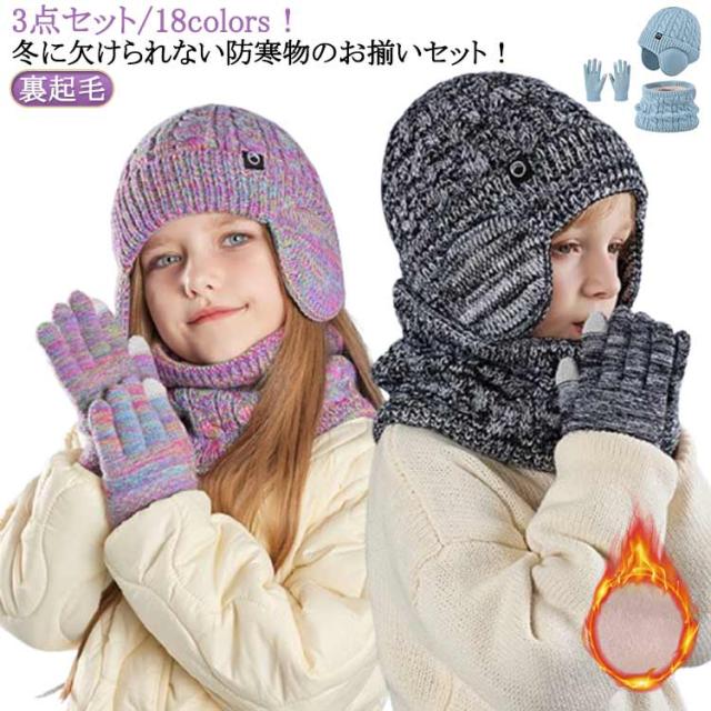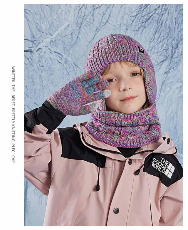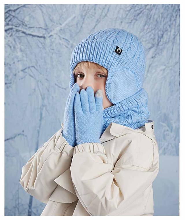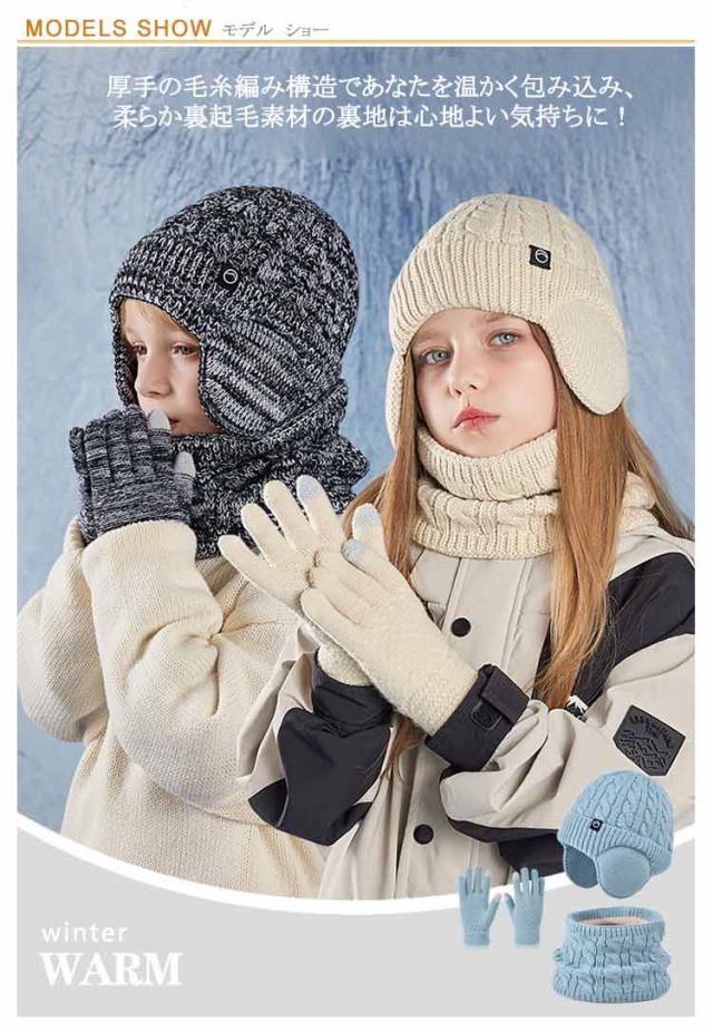 キッズ 手袋 裏起毛 【3点セット】 ニット帽 スヌード 4-10歳お子様向け 子供用 秋 女の子 マフラー グローブ 男の子 耳あて付き帽子 ニット帽子 冬 ニットキャップ ネックウォーマー ワッチキャップ 幼児 防寒 あったか 子ども