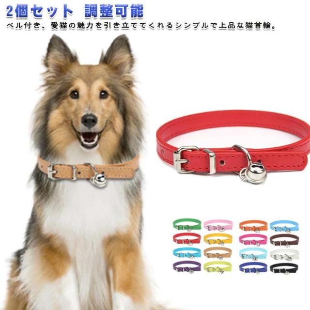 首輪 鈴付き おしゃれ 2個セット ベル付き フェイクレザー レザー調 猫 小型犬 猫用 猫の首輪 犬の首輪 調整可能 合成皮革 ギフト ペット 首輪 シンプル 子猫 可愛い ペットグッズ セーフティ 安全 猫首輪 かわいい ねこ くびわ お洒落 猫用品 犬用品