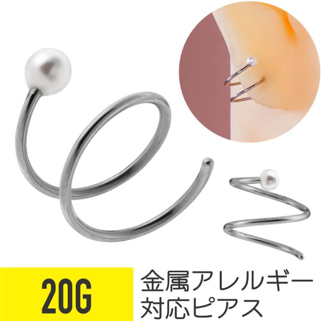 パール ツイスト ピアス 20G サージカルステンレス 軟骨ピアス ボディピアス スパイラル ピアス 金属アレルギー 対応 つけっぱなし