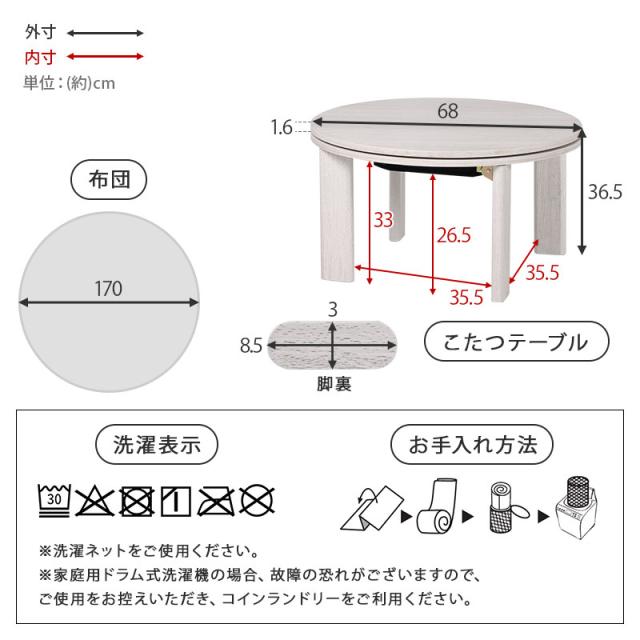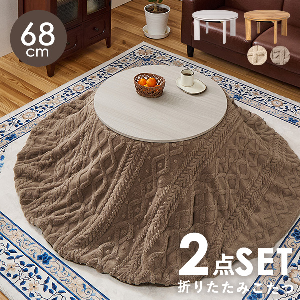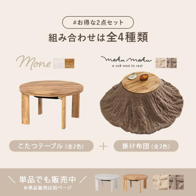 こたつ こたつセット 一人用 こたつテーブル おしゃれ こたつ布団 テーブル セット 洗える 丸型 コタツ 白 折りたたみ 木目調 韓国 姫系 かわいい モネ+モクモク 折りたたみテーブル 折り畳みテーブル 丸型 炬燵 2点セット 丸