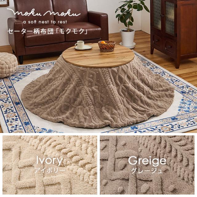 ケーブルニットのような柄が可愛いお部屋のアクセントになるこたつ布団です。