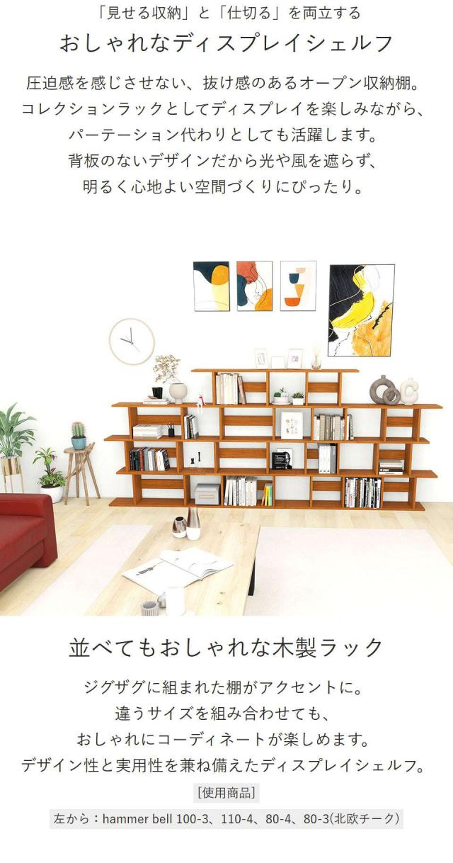 ディスプレイシェルフ オープンラック 本棚 おしゃれ 4段 大容量 ディスプレイ棚 飾り棚 木製 パーテーションラック マガジンラック A4サイズ コレクション棚 雑誌 絵本 教科書 オフィス用品 間仕切り オープンシェルフ ジグザグラック 日本製 簡単組立品 幅100cm ★