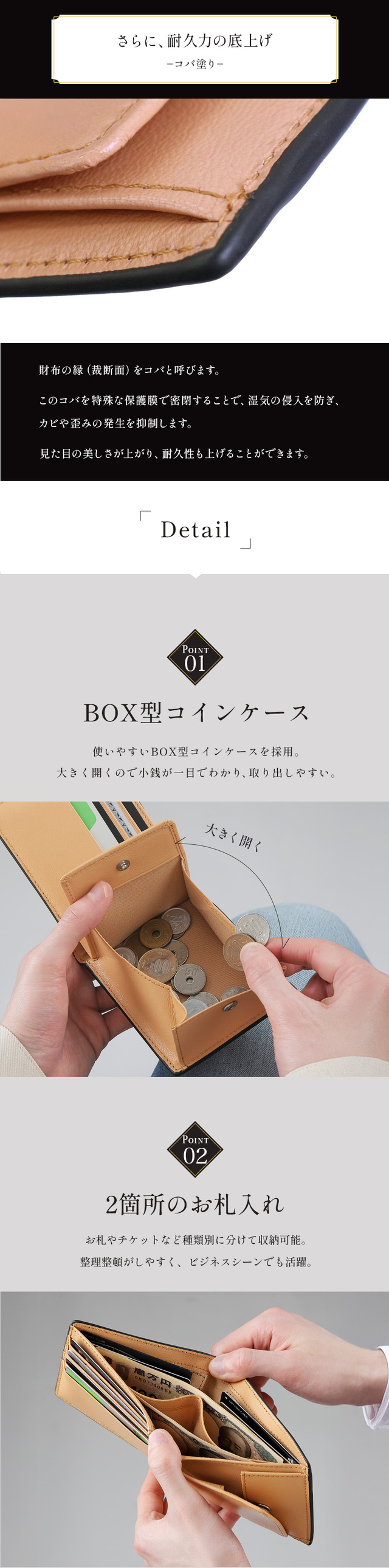 素材:牛本革(外側)、山羊革(内側)、ナイロン(コインケース内)