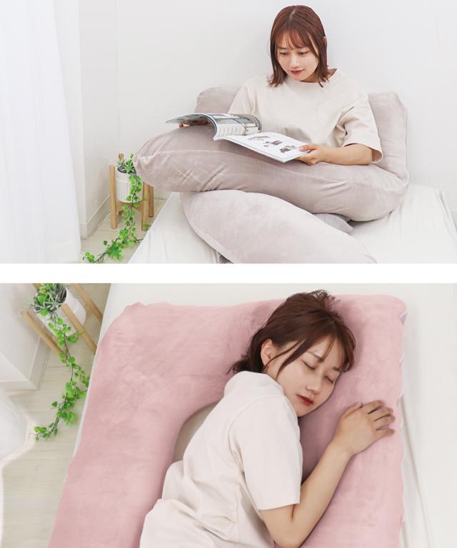 身体を包み込むように湾曲したU字型抱き枕です。