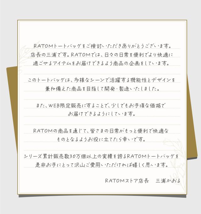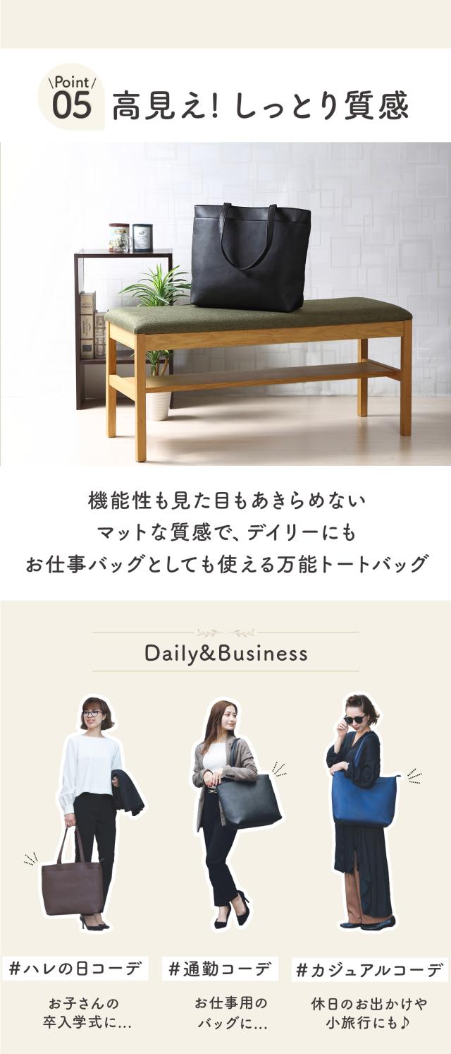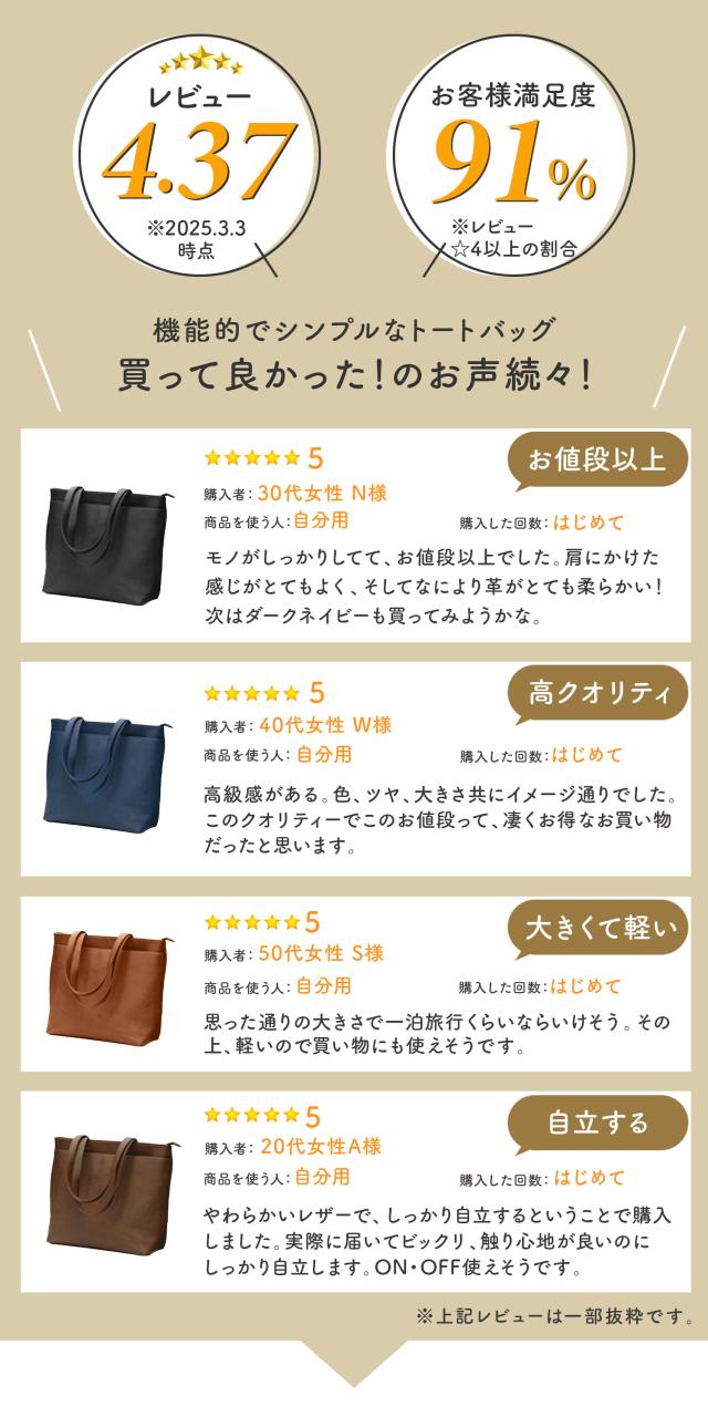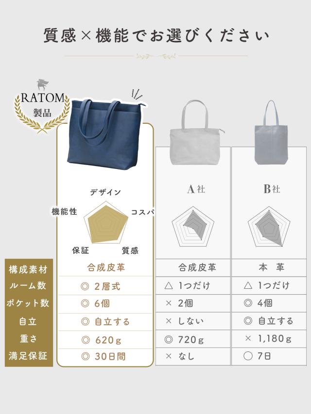 - 他にもトートバッグを持ってはいるのですが普段用と仕事用みたいな感じで使い分けできる物を探していた所に発見が出来メリハリがでて良かったです