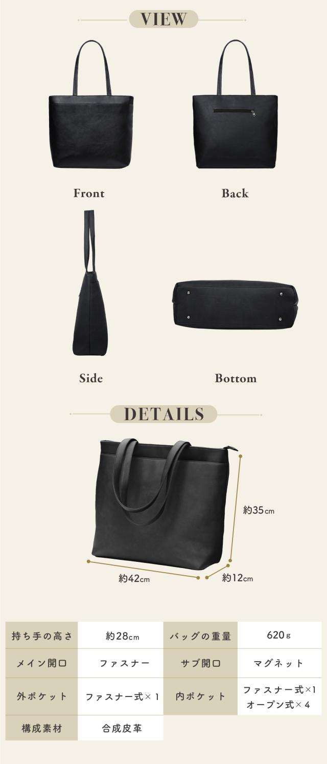 送料無料 ビジネスバッグ トートバッグ レディース 大容量 大きめ 軽量 バッグ 黒 PUレザー ポケット a4 通勤 おしゃれ 革 カバン おすすめ