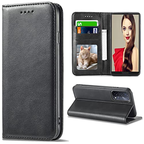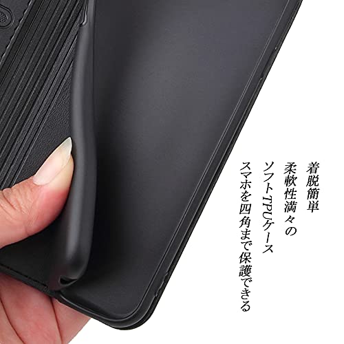 OPPO A54 5G OPG02 ケース 手帳型 手帳型ケース カバー スマホケース PUレザー ストラップホール付き カード収納 財布型 マグネット内蔵 スタンド機能 耐衝撃 全面保護 薄型 軽量 耐摩擦 シンプル ビジネス風 大人可愛い ブラック