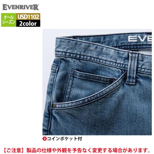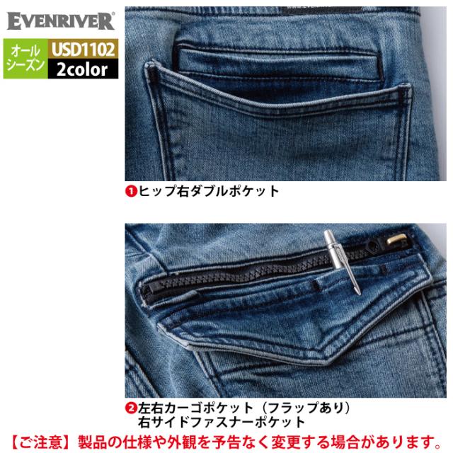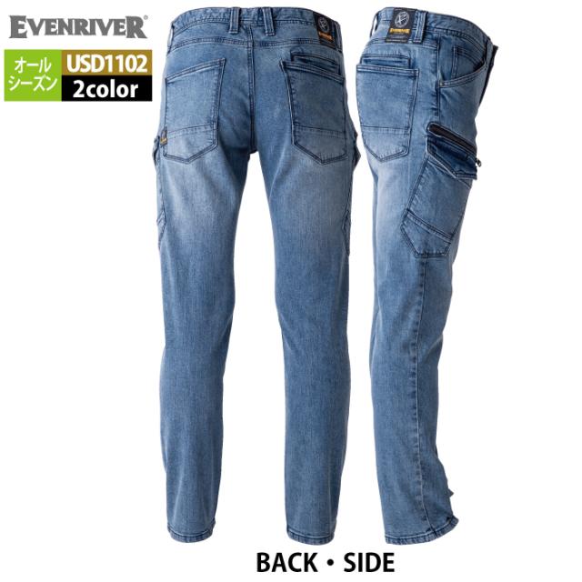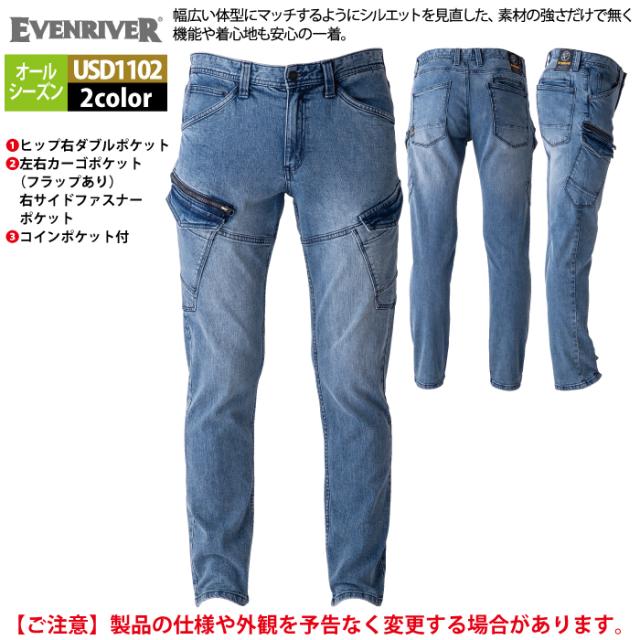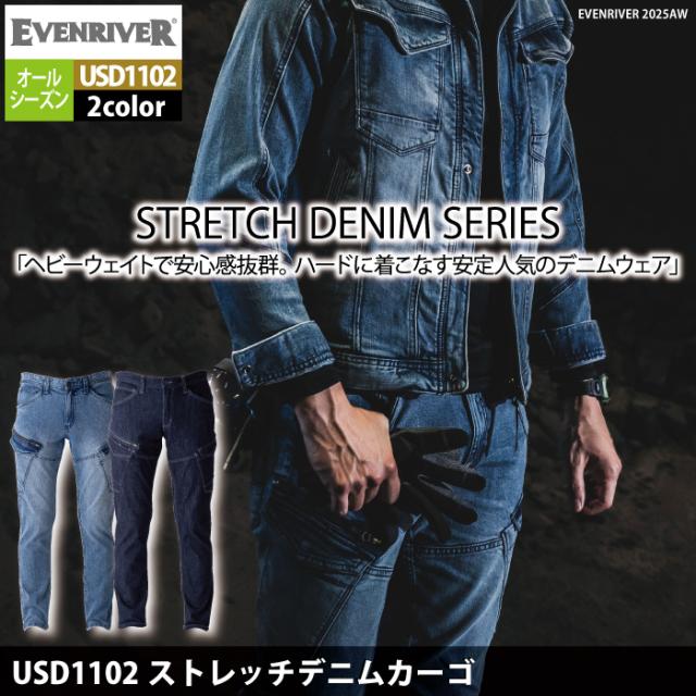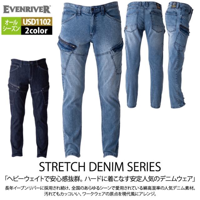 イーブンリバー EVENRIVER 作業服 作業ズボン 2025秋冬新作 USD1102 ストレッチデニムカーゴ S-4L 作業着 おしゃれ