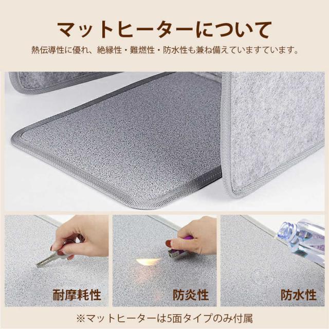 左・正面・右の3面に加えて、底面のマットにもヒーターを内蔵。