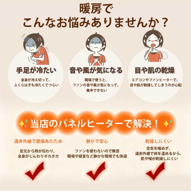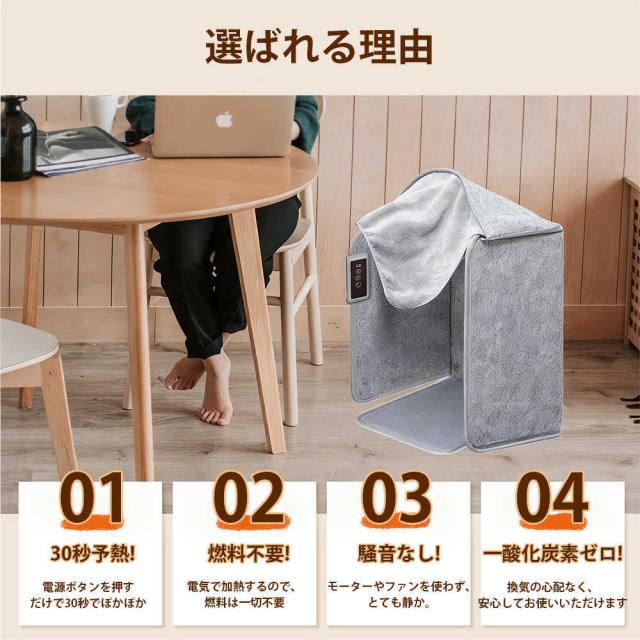 本製品は 遠赤外線ヒーター を採用しており、熱が身体に直接伝わりやすく、