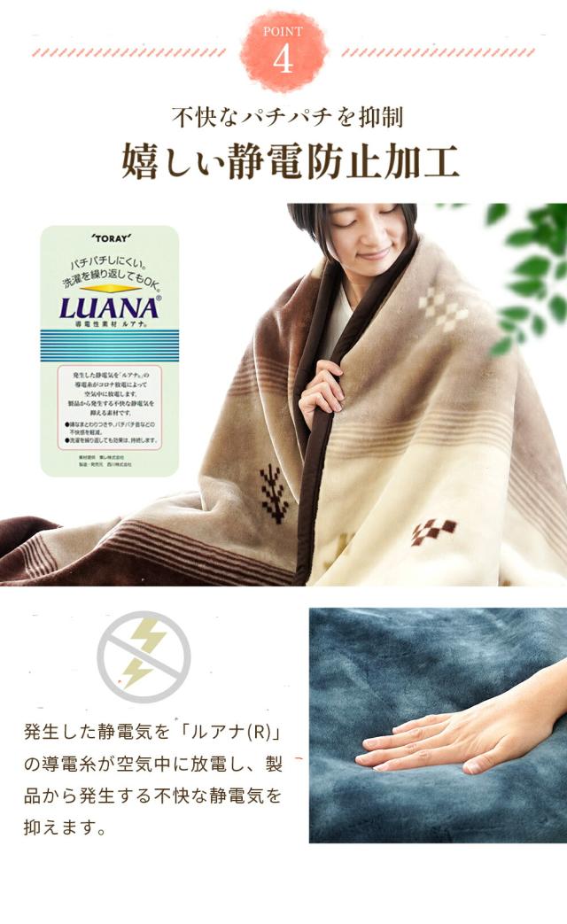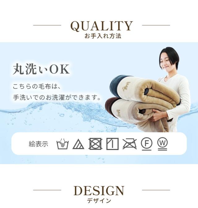 ・当社でしか手に入らない限定デザイン イランの遊牧民たちが織りあげる絨毯「ギャベ」。その素朴さが人気のギャベ柄をモチーフにデザインした、おしゃれな毛布がやってきました。 みっちりと密集したこのアクリル100%の毛羽部分が肌にやさしく触れ、しかも保温性抜群。耐久性も高いため長くご使用いただけます。 ・2枚合わせマイヤー毛布2枚の毛布をヘム加工でしっかり縫い合わせた毛布です。2枚の生地の間に体温であたたまった空気を多く含むので1枚物の毛布よりほっこりあったか。 ・ふっくら衿付き隙間ができやすい衿元(肩口)のあたりをしっかりカバーしてくれる衿付きタイプ。フェイスラインへの触れ心地も柔らかくて気持ちいい。 ・安心感を与えてくれる程よい重みとボリューム一般的な毛布より少し重めの仕上がり。重たい掛け心地を好む方や寒がりの方におすすめです。 ・不快なパチパチを抑制 嬉しい静電防止加工発生した静電気を「ルアナ(R)」の導電糸が空気中に放電し、製品から発生する不快な静電気を抑えます。洗濯を繰り返してもOKです。 名産地・泉大津で作られる、職人の技術が光る安心の日本製毛布大阪府南部に位置する泉大津市は、日本一の毛布生産量を誇る「毛布のまち」。日本毛布工業組合の品質基準をクリアし、染色の色調合、風合い加工の起毛や毛さばきなど、すべて日本国内の職人によって丁寧に仕上げられています。科学や計算だけでは生み出せない、熟練の技術と感覚によって、初めて良い毛布が完成します。 |