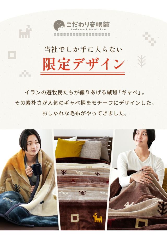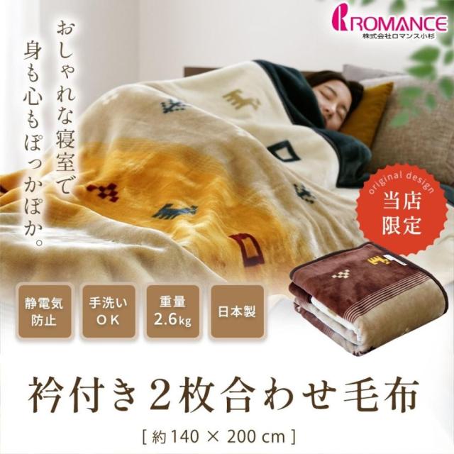 [keyword|ロマンス小杉 毛布 シングル 厚手 2枚合わせ 日本製 洗える 毛羽アクリル100% 2枚合わせ毛布 140×200cm 国産 衿付き アクリル毛布 マイヤー 制電性素材 2.6kg ギャベ柄 当社限定 かわいい 泉大津 冬 あったか 冬用]