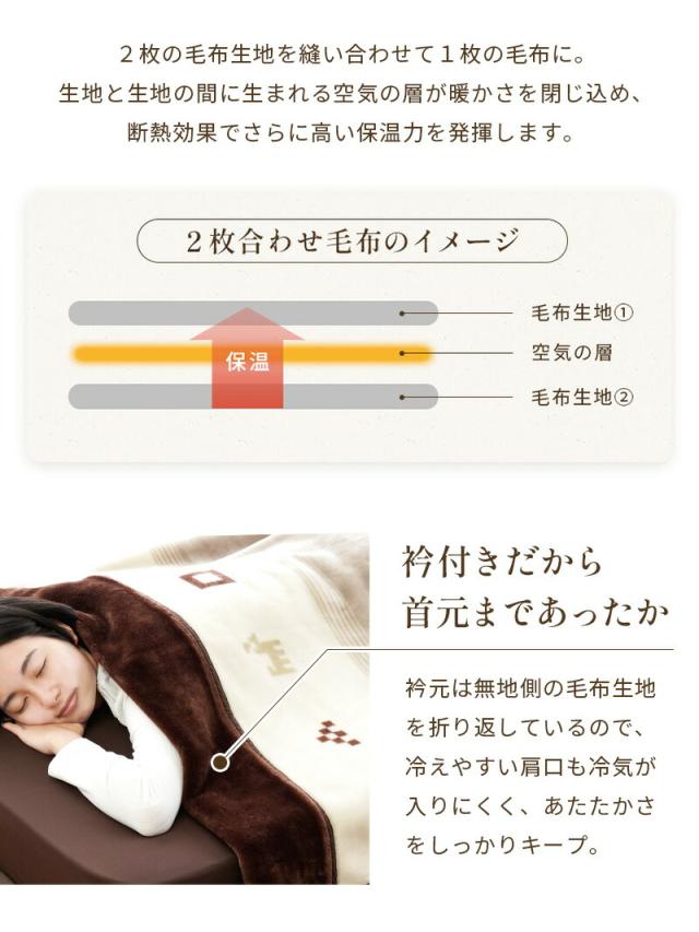 毛布 ゴート シングル ロマンス小杉 厚手 2枚合わせ 日本製 ギャベ柄 【ゴート】 洗える 毛羽アクリル100% アクリル毛布 マイヤー 制電性素材 約2.6kg 2枚合わせ毛布 国産 衿付き 140×200cm 当社限定 かわいい 泉大津 冬 あったか 冬用