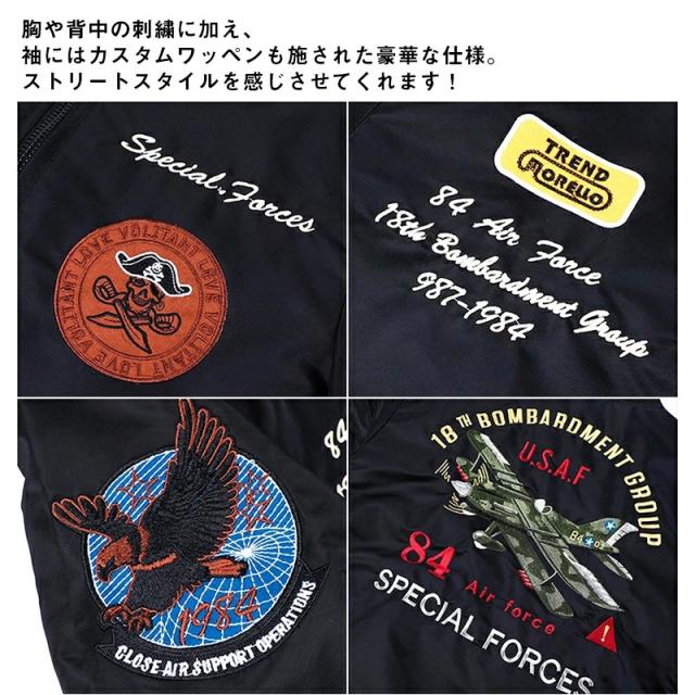 ポイント 本格的なMA-1のディテール。今季人気のスタイルを取り入れるなら、秋冬に嬉しいライトアウターが登場しました!表地は光沢があり耐久性に優れたストレッチナイロン繊維を使用し、ワッペンや刺繍でカスタムを加えたモデル!肌触りが良くて洗い易くて、快適な着心地を楽しむことができます。
