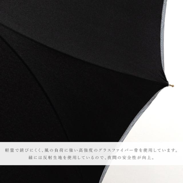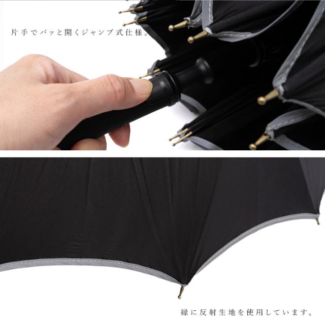 傘のエッジ箇所に発射テープを施し、視界の悪い雨の日の夜道でも安心