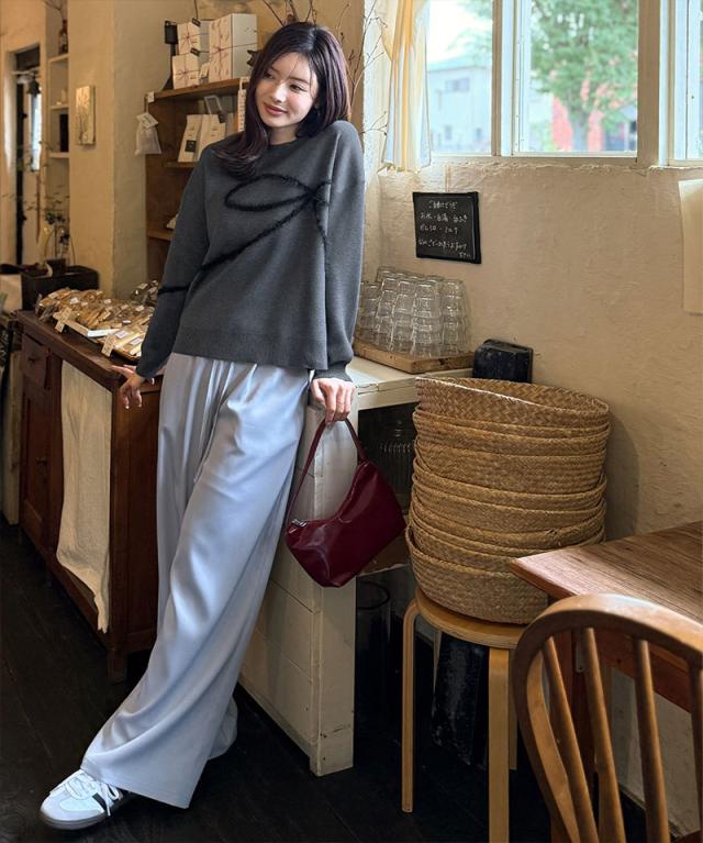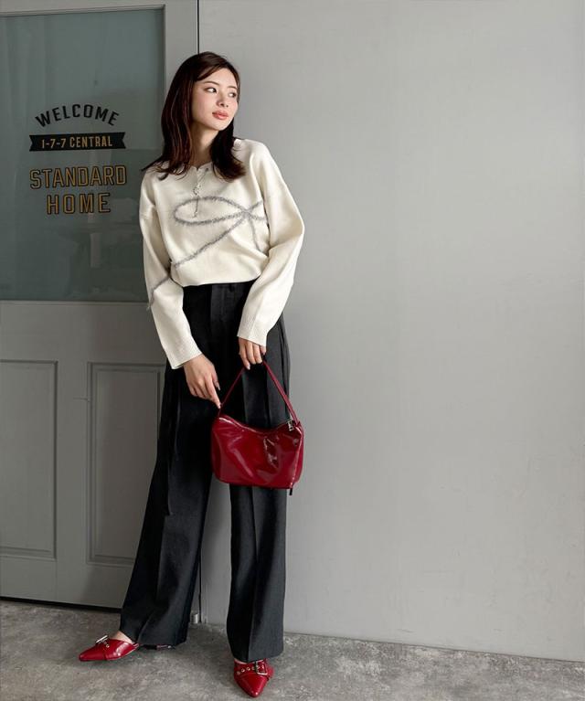カジュアルにデニムパンツ合わせから、ワイドパンツ、スラックス、