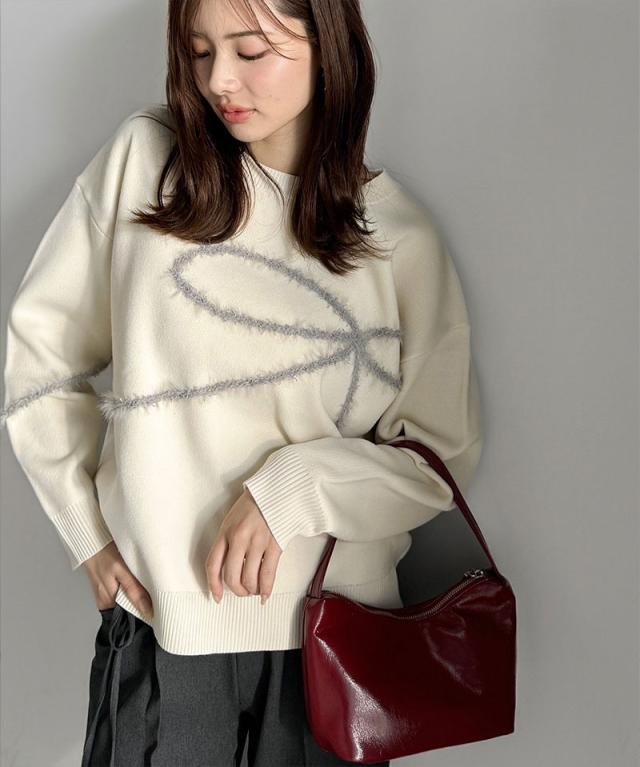 毛足感のある刺繍糸で施された手描き風のコード刺繍がポイントのニット♪