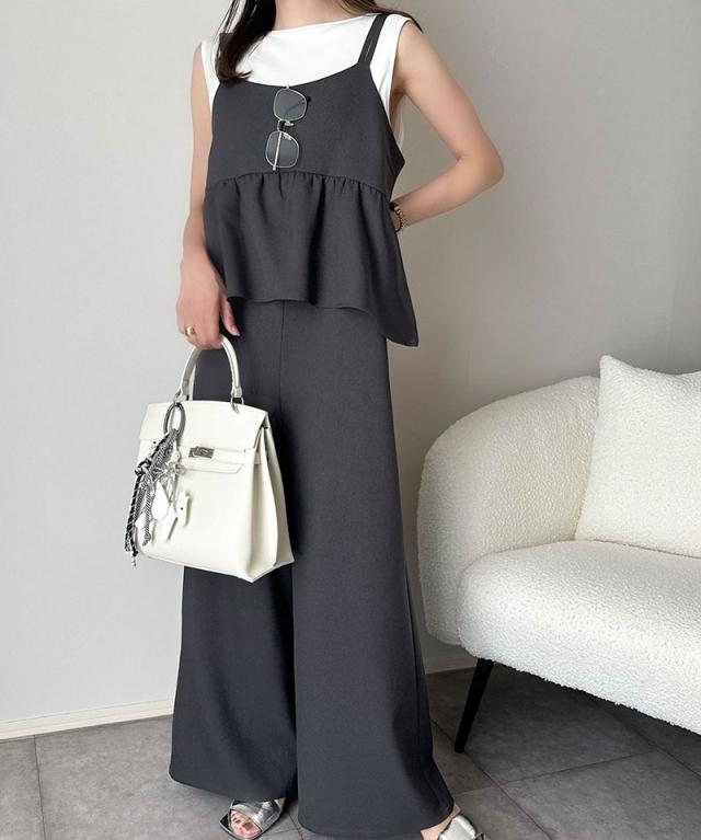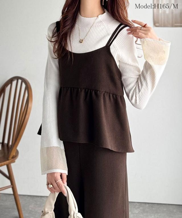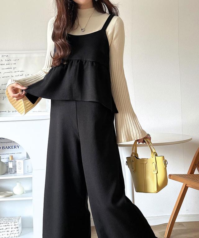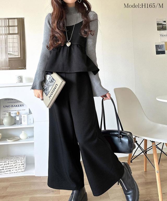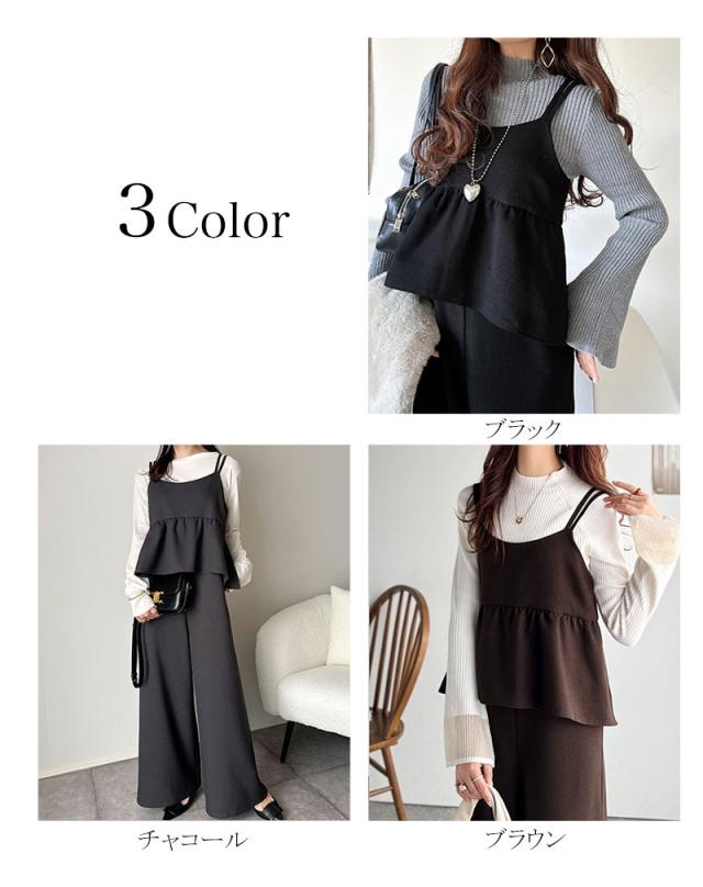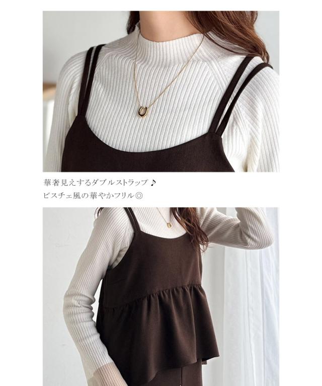 クラシカルエルフ冬新作 オールインワン レディース サロペット ブルストラップ ペプラム パンツ 華奢見え 華やか ビスチェ風 フリル カジュアル 肩紐調整可能 脚長効果 腰まわりカバー すっきり シンプル 大きいサイズ 2025aw ce1265035