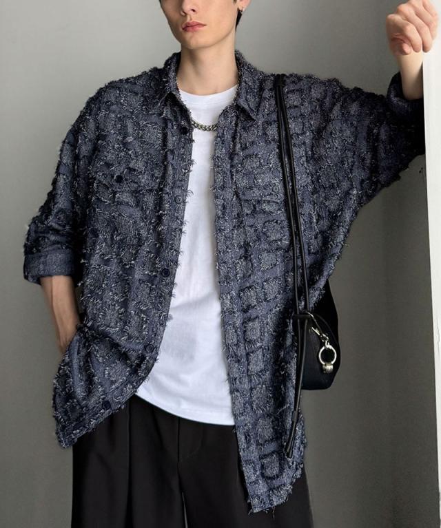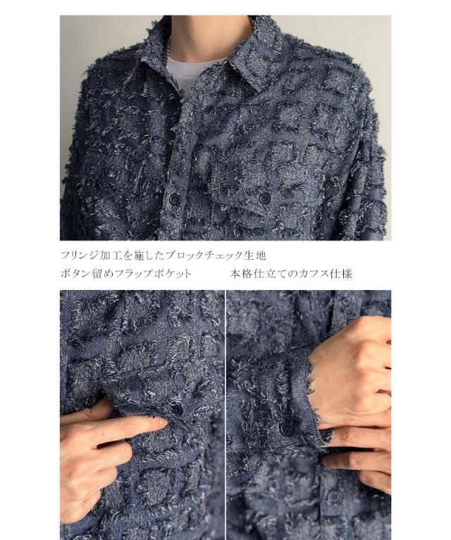 クラシカルエルフ冬新作 Classical Origin トップス 秋 おしゃれ シャツ メンズ 長袖 ブロックチェック アウターシャツ フリンジ ジャケット デザインシャツ 高品質 両胸フラップ ポケット付 ゆるシルエット 個性的 大きいサイズ 2025aw co1010021