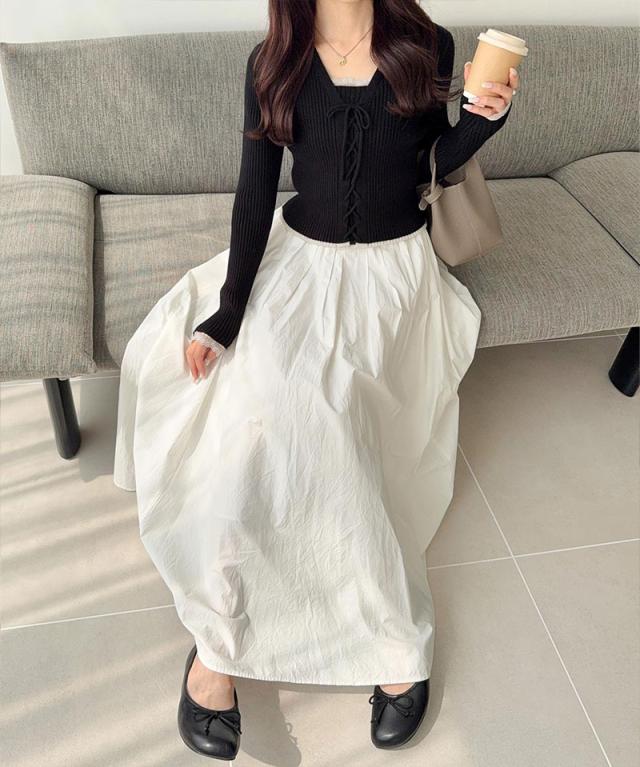 トレンド感たっぷりのレースアップデザインが目を惹くリブニットトップス。