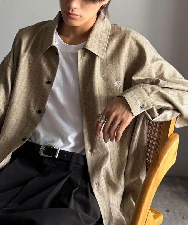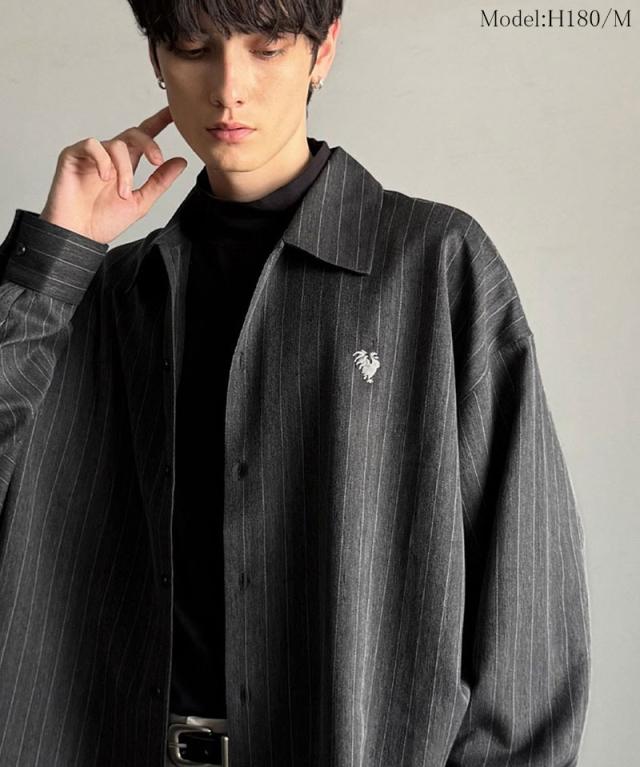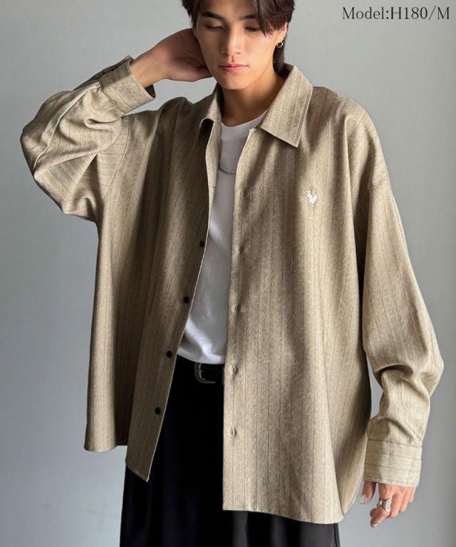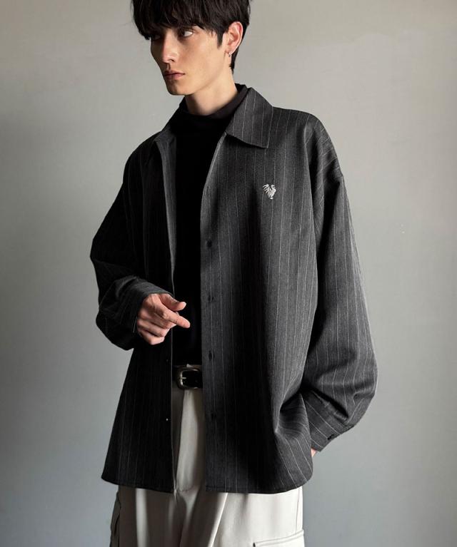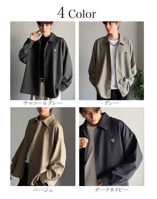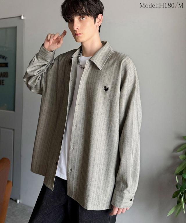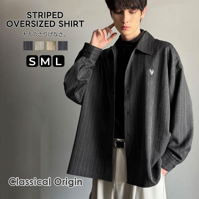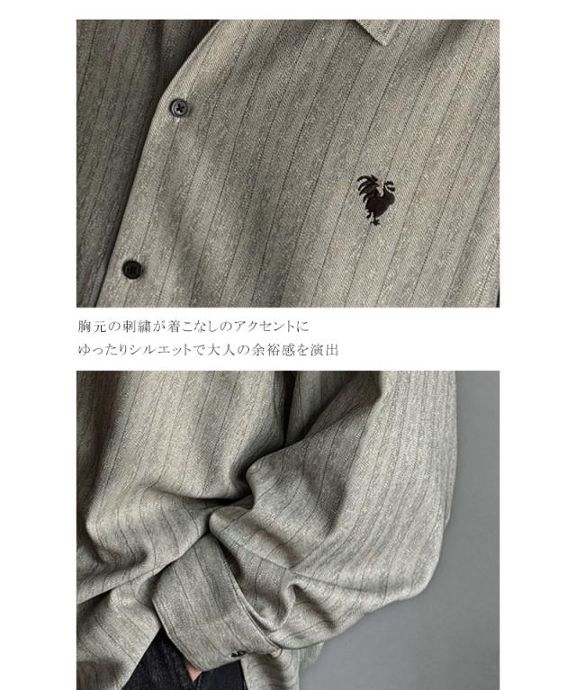 クラシカルエルフ冬新作 Classical Origin メンズ トップス 長袖 シャツ おしゃれ 刺繍入り ストライプ オーバーサイズ 大人 ロングシーズン ゆとり アウター 上品 ツヤ感 モード リラックス レイヤード シャツジャケット 羽織 大きいサイズ 2025aw co1010023