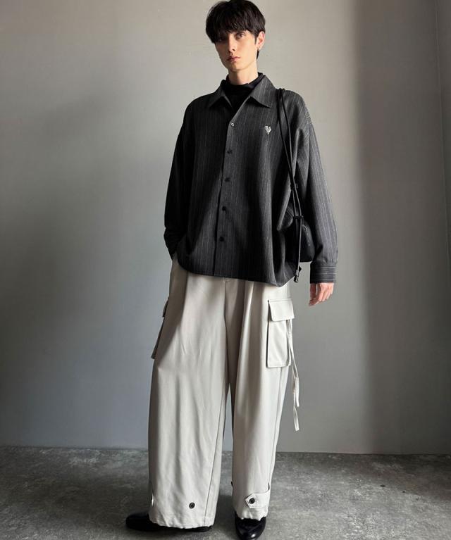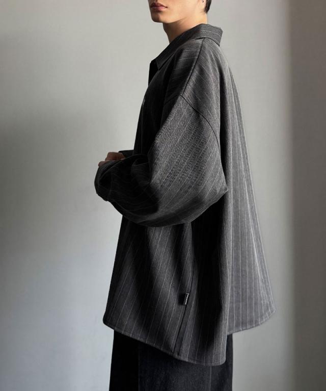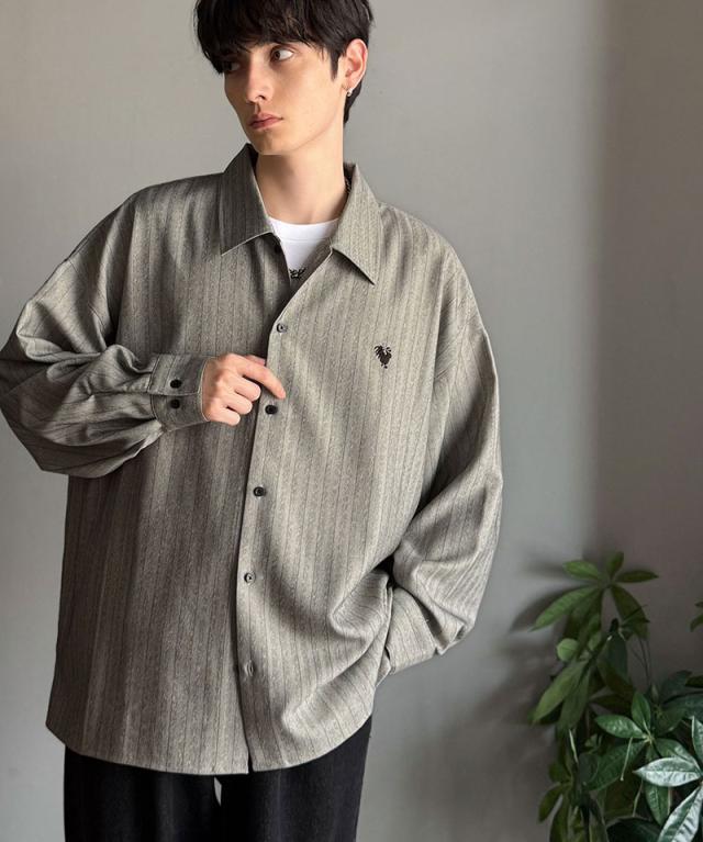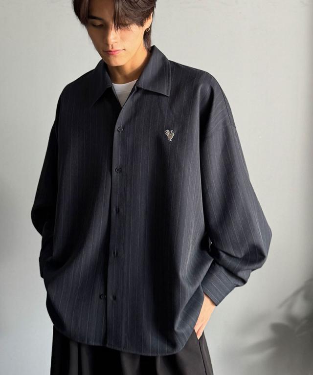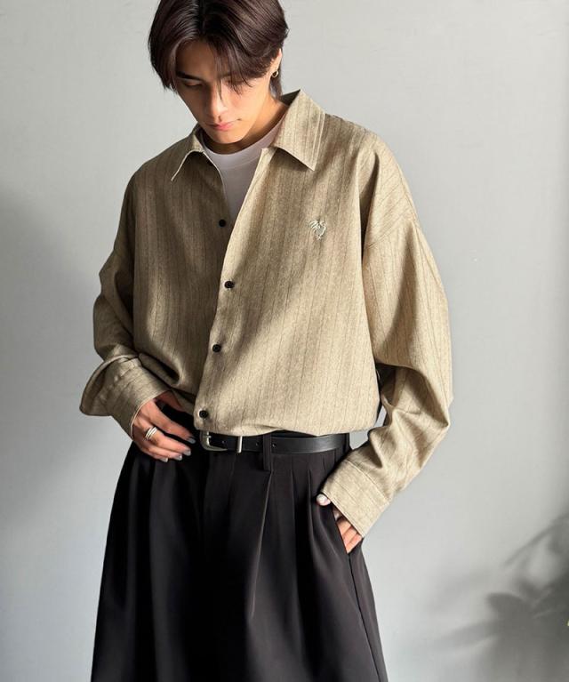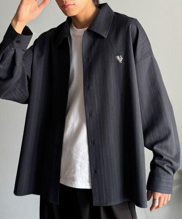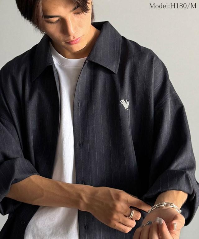 クラシカルエルフ冬新作 Classical Origin メンズ トップス 長袖 シャツ おしゃれ 刺繍入り ストライプ オーバーサイズ 大人 ロングシーズン ゆとり アウター 上品 ツヤ感 モード リラックス レイヤード シャツジャケット 羽織 大きいサイズ 2025aw co1010023
