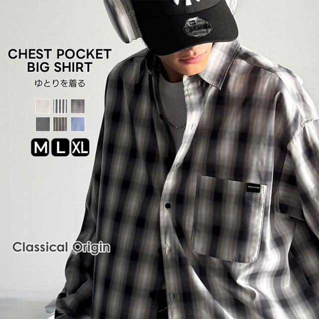 クラシカルエルフ冬新作 Classical Origin シャツ メンズ 長袖 カジュアル トップス ビッグシャツ 胸ポケット ゆったり こなれた印象 肩落ちシルエット ハリ感 ドロップショルダー リラックス 抜け感 シンプル ワイド 大きいサイズ 2025aw ao1110147