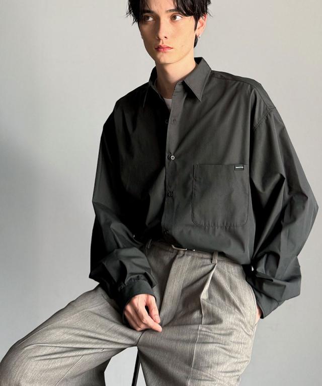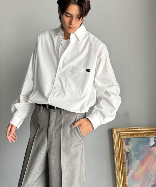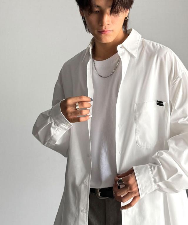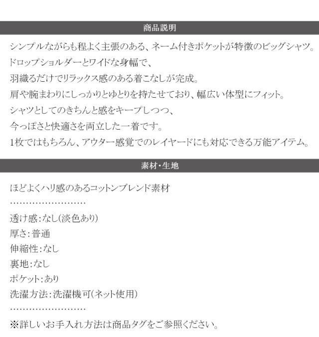 シンプルながらも程よく主張のある、ネーム付きポケットが特徴のビッグシャツ。