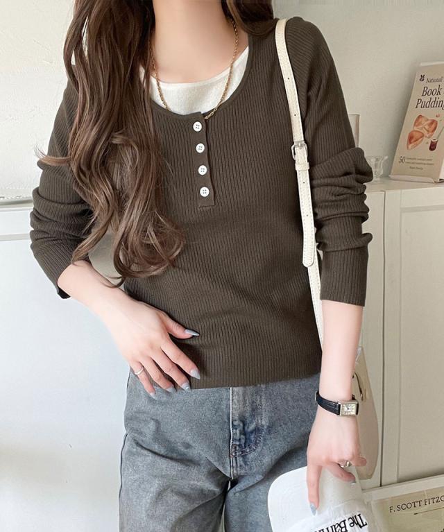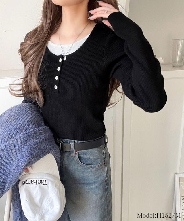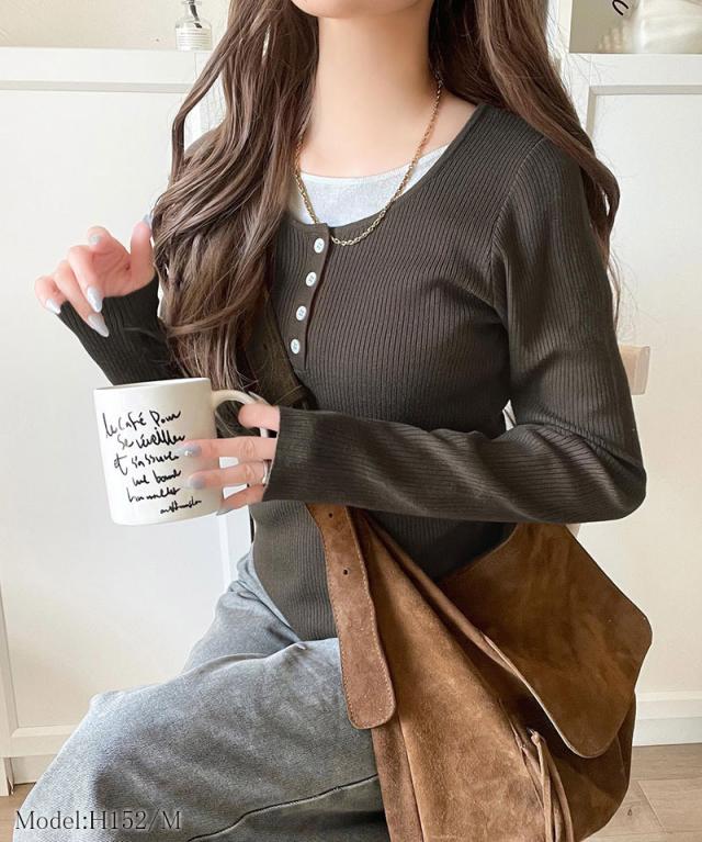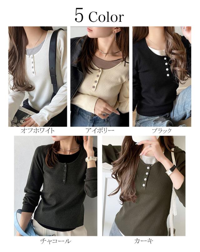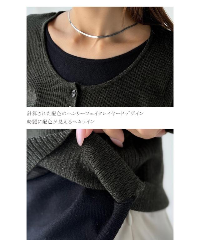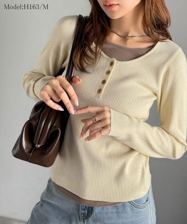 クラシカルエルフ冬新作 トップス ニット レディース 長袖 ヘンリーネック フェイクレイヤード カジュアル 重ね着風 シンプル 存在感 伸縮性あり ノンウール シーズンレス 上品 なめらかなニット 大きいサイズ 2025aw ce1020278