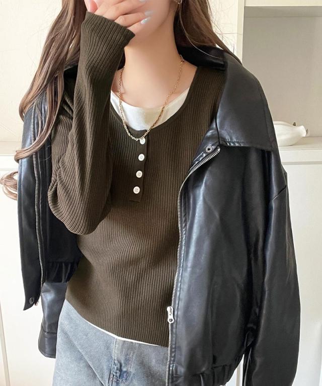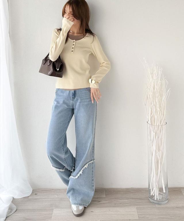 レイヤード風のフェイクデザインが、コーディネートに奥行きを与え、スタイリングの幅を広げてくれます。