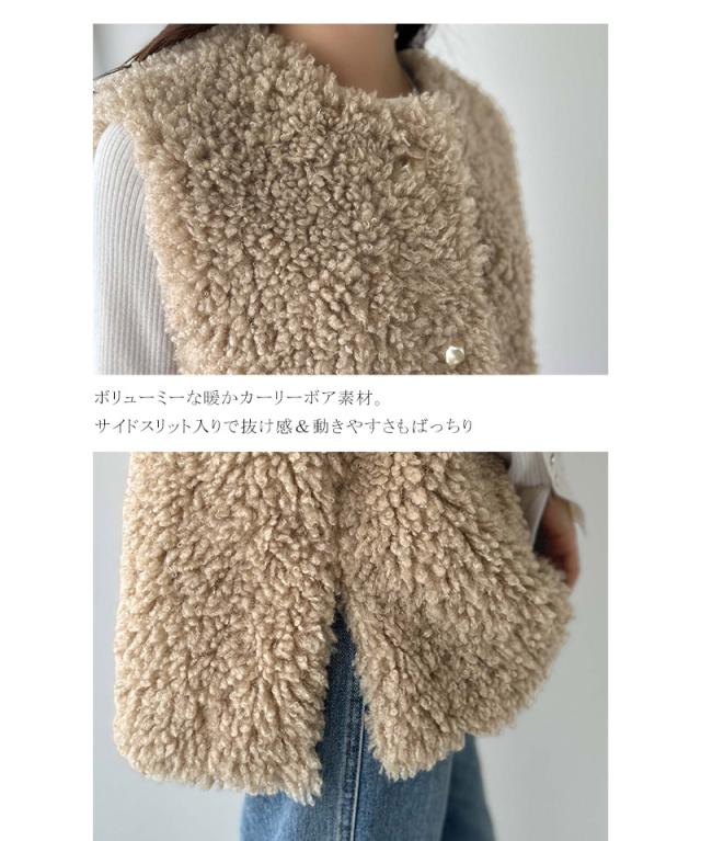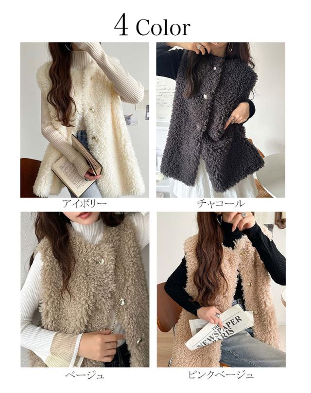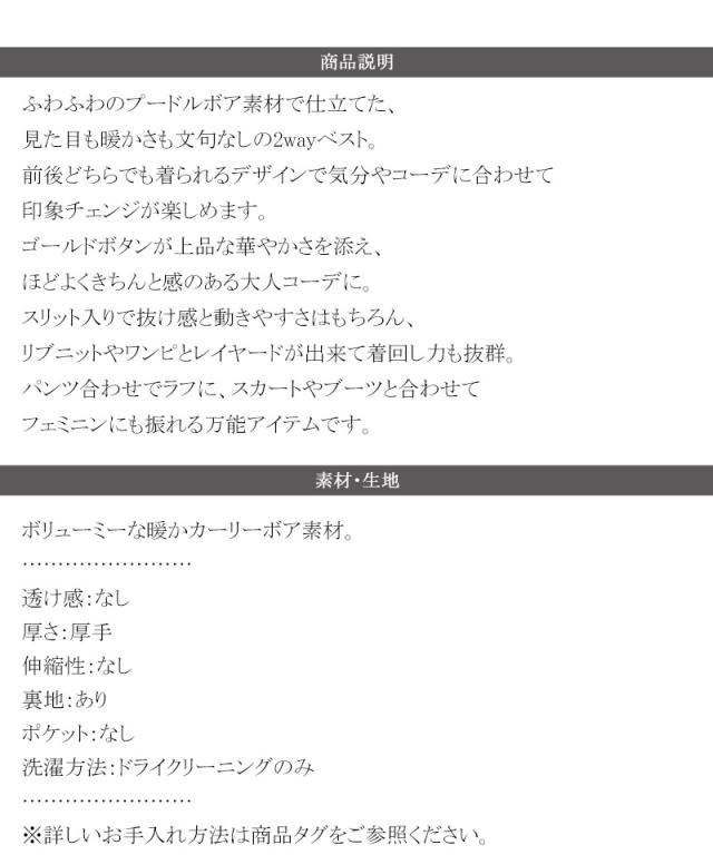 クラシカルエルフ冬新作 ベスト レディース トップス 前後2way プードルボア もこもこ 暖か ボアベスト ゴールドボタン 秋冬コーデ 上品 抜け感 華やか きちんと感 大人コーデ フェミニン オシャレ 羽織る 大きいサイズ 2025aw ce1265015