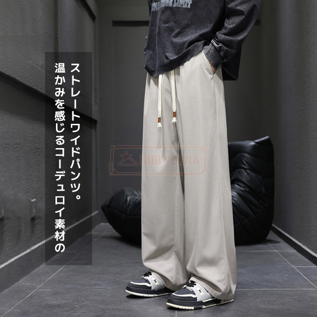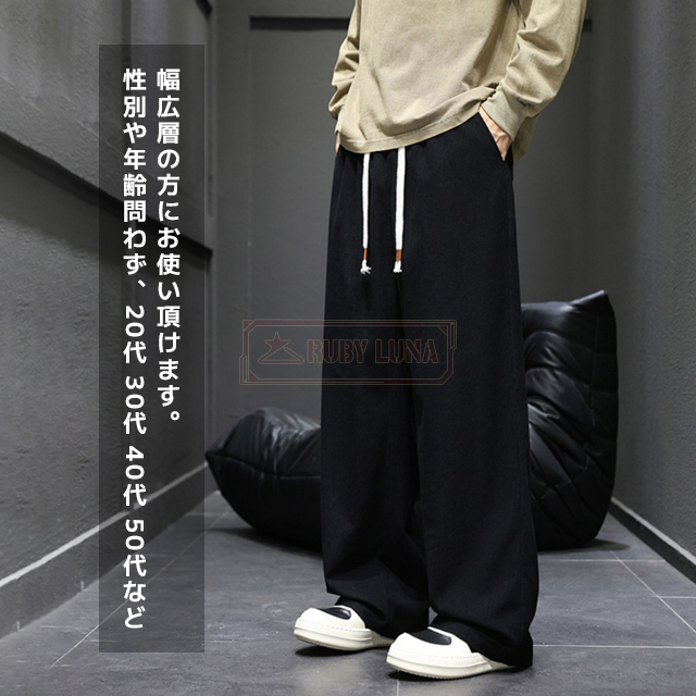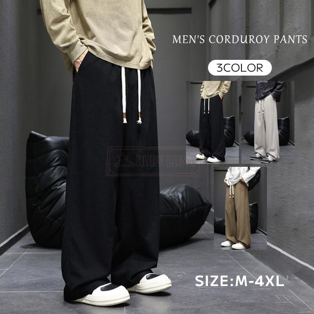 最安挑戦 冬新作 送料無料 新作 ワイドパンツ メンズ コーデュロイパンツ 体型カバー 秋冬 厚手 長ズボン 無地 シンプル ゆったり ロングパンツ ルーズ ドレープ カジュアル ボトムス 引き紐付き ウエストゴム調節 ファッション
