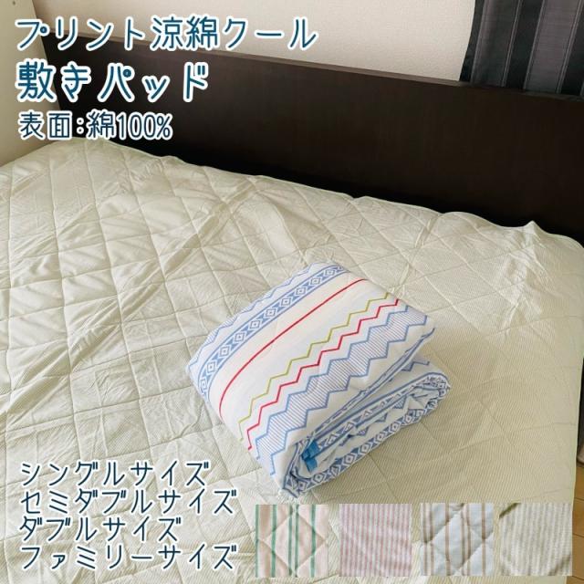 プリント 涼綿 敷きパッド サイズ色々 表綿100% シングル-ファミリーサイズ 丸洗い オールシーズンOK夏 敷パッド 布団 ベッド パッド 暑さ対策 コットン ウォッシャブル 丸洗いOK